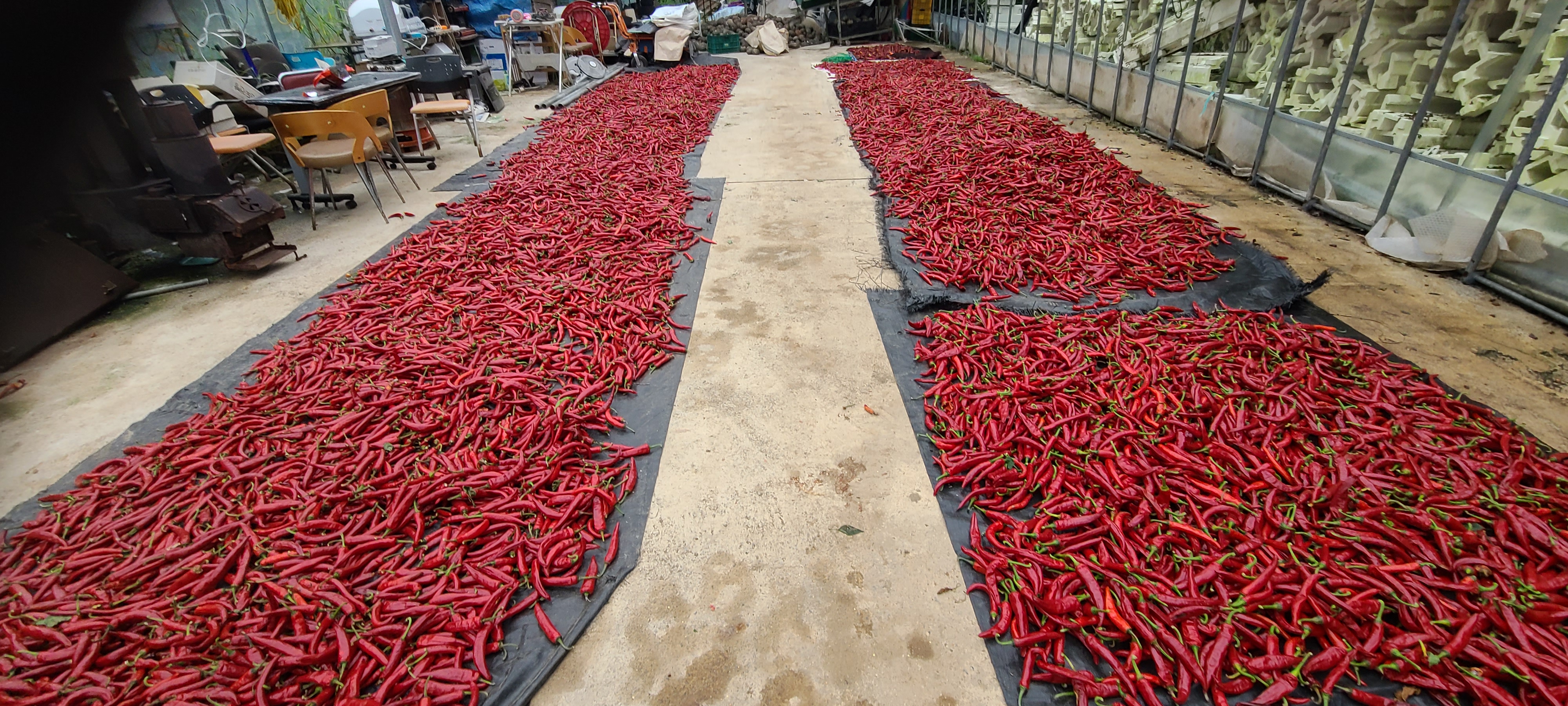 말리고 비닐하우스에서 태양볕에 다시 며칠 더말립니다