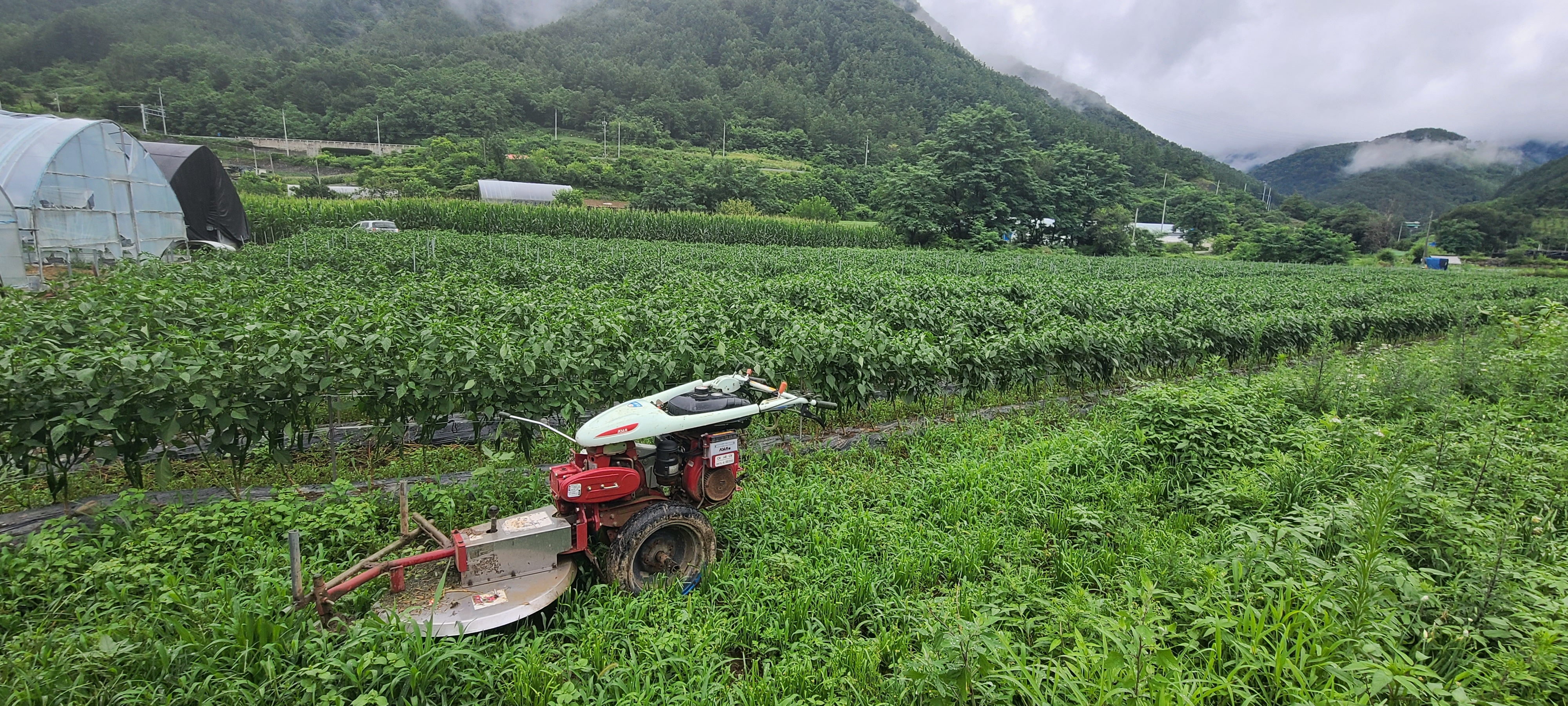 초생재배 하다가 7월말에 헛골비닐 덮어